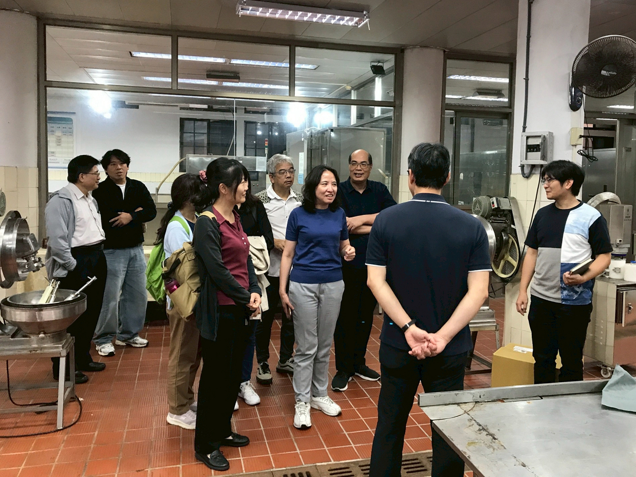 國民健康署社區健康組秦義華科長、食品所王怡晶資深研究員/單元主持人及邱亞婕副研究員、食品產業學院陳怡靜副研究員等一行人於 2025/10/22 (三) 訪視本系大二 [高齡營養與食品研發] 課程導入國健署補助之質地調整飲食課程。