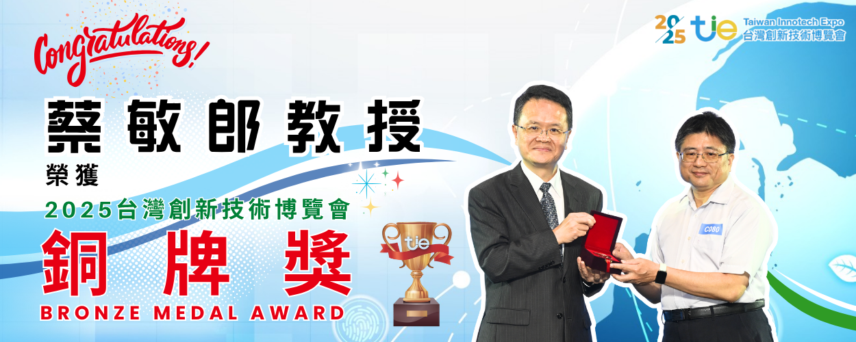 蔡敏郎教授團隊以「幾丁質水溶液及其得到方法」榮獲「2025台灣創新技術博覽會」銅牌獎