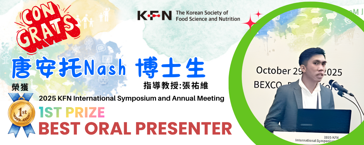 唐安托 Nash博士生 (指導老師:張祐維教授)榮獲 「2025 KFN International Symposium and Annual Meeting」 1st Prize Best Oral Presenter - Doctoral Student Oral Competition