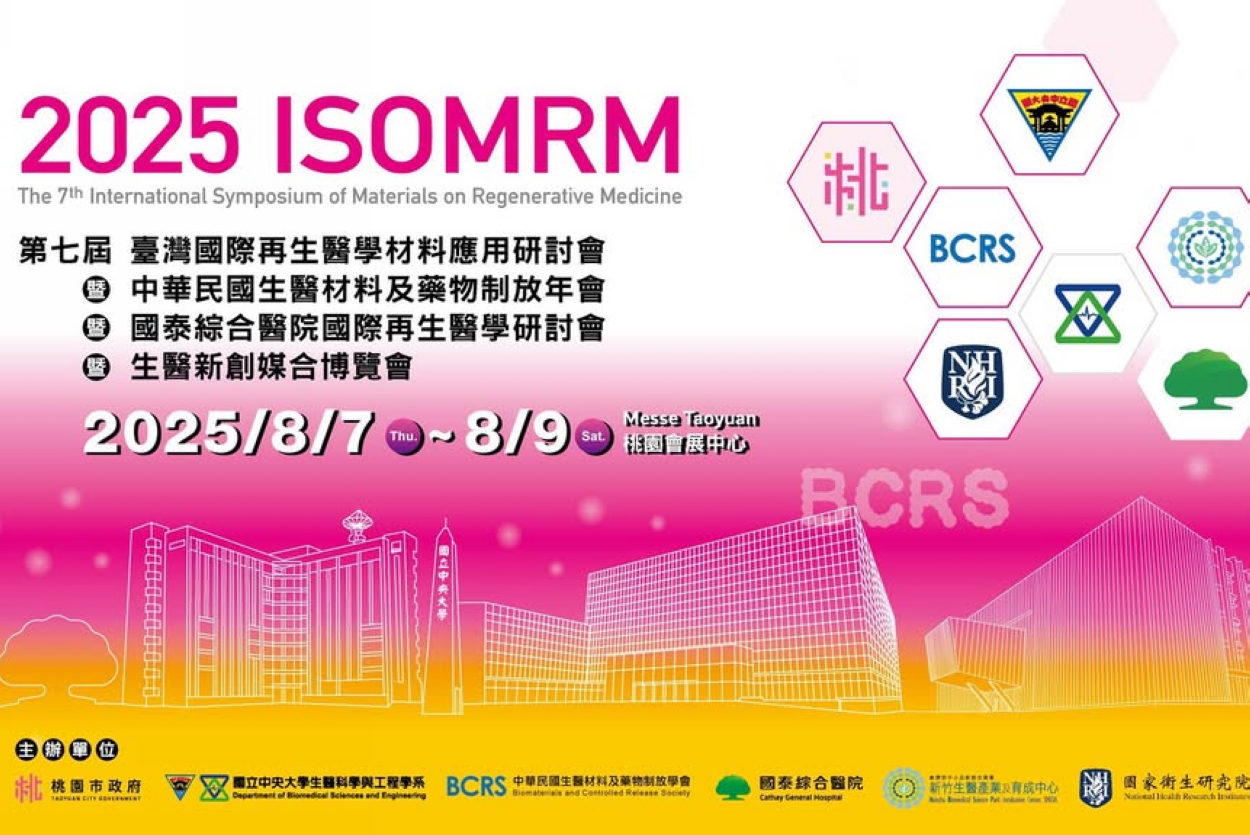 第七屆「臺灣國際再生醫學材料應用研討會」(ISOMRM 2025)與首屆「BIOMED-X生醫新創媒合博覽會」114年7日起到9日在桃園會展中心聯袂登場。活動集結國際級學者、臨床專家與產業領袖,構築從前沿研究到市場落地的完整創新生態鏈,讓桃園一躍成為全球生醫科技關注的焦點,也象徵台灣生醫創新推進的關鍵時刻正式啟動。