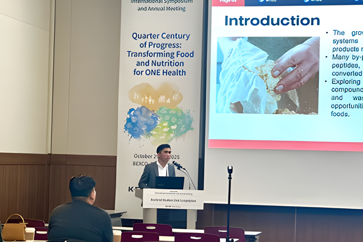 2025年韓國食品營養學會 (KFN) 國際研討會暨年會於2025年10月29日在韓國釜山展覽會展中心舉行。活動主題為進步的四分之一世紀:轉型食品與營養以實現「全健康」(Quarter Century of Progress: Transforming Food and Nutrition for ONE Health) ,亮點聚焦於當前科技與產業應用的結合。本系張祐維教授受與博士生唐安托受邀參加並發表相關學術論文。