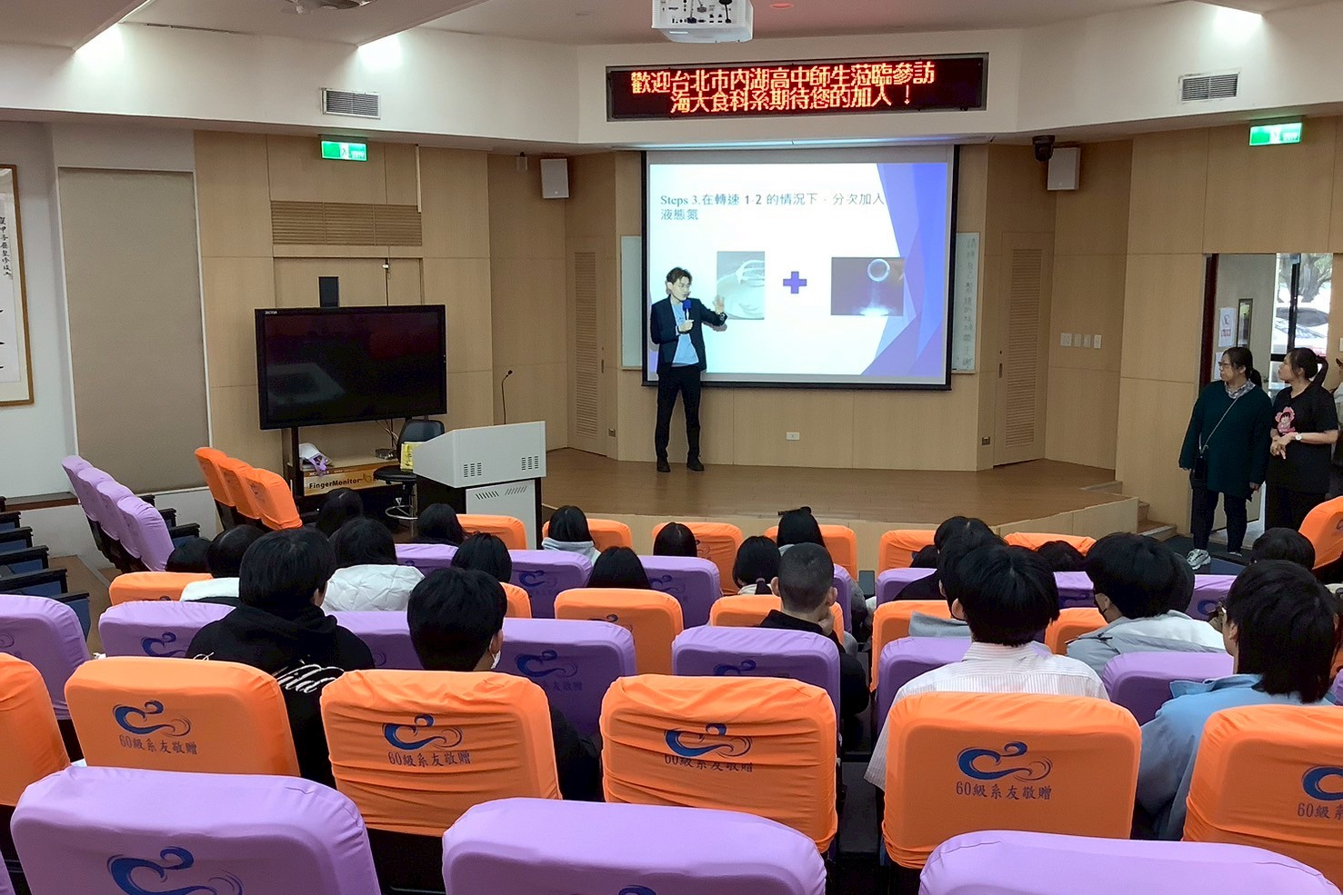 2026年1月21日,臺北市立內湖高級中學董家莒校長帶領82名師生蒞臨海洋大學進行參訪。校方安排參觀食品科學系、海洋生物科技學程、環境生物與漁業科學學系及水產養殖學系。本系由生命科學院院長吳彰哲特聘教授領軍陳泰源主任、方銘志副主任及陳詠宗老師親自接待來訪師生。