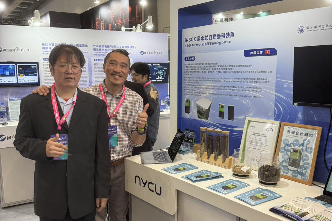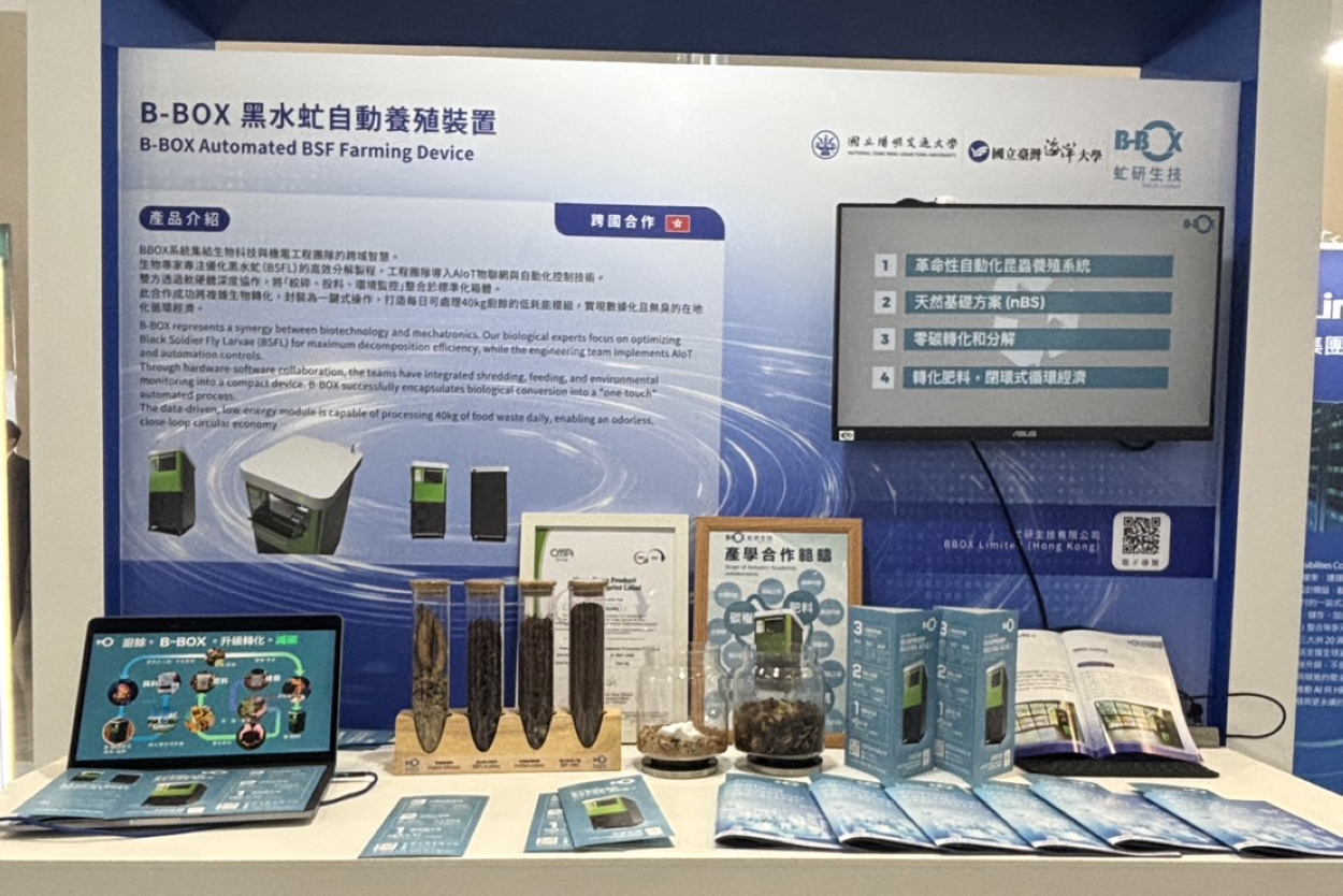 本系陳建利老師與研究團隊成員博士生劉承賢與研究生羅駿森受邀參與此次盛會,會中發表團隊研究成果「天然香氣導向之果實發酵與後熟風味精准控制技術平台」與「B-BOX 黑水虻自動養殖裝置」。
