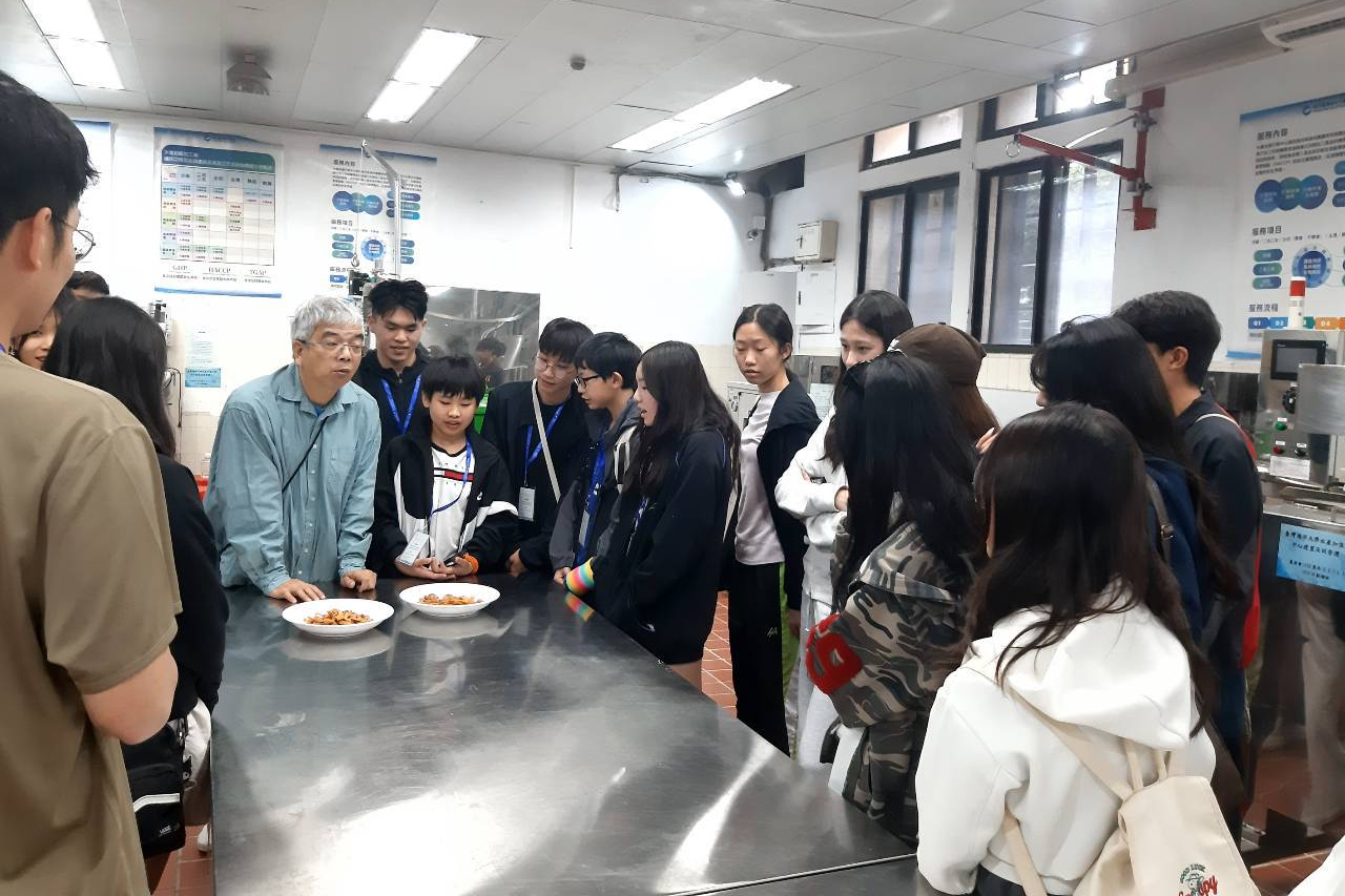 為了讓訪團師生更具體感受海大的科研實力,國際處特別安排了一系列專業參訪行程。在食品科學系參觀「水產加值打樣中心」,系上安排陳建利老師、劉修銘老師與王敦正技士負責招待,介紹學生們了解水產品從產地、加工到餐桌的創新技術,認識海洋資源的高價值應用;隨後轉往「水生動物實驗中心」,觀摩海大在水產養殖、物種復育及生物技術領域的卓越成果。