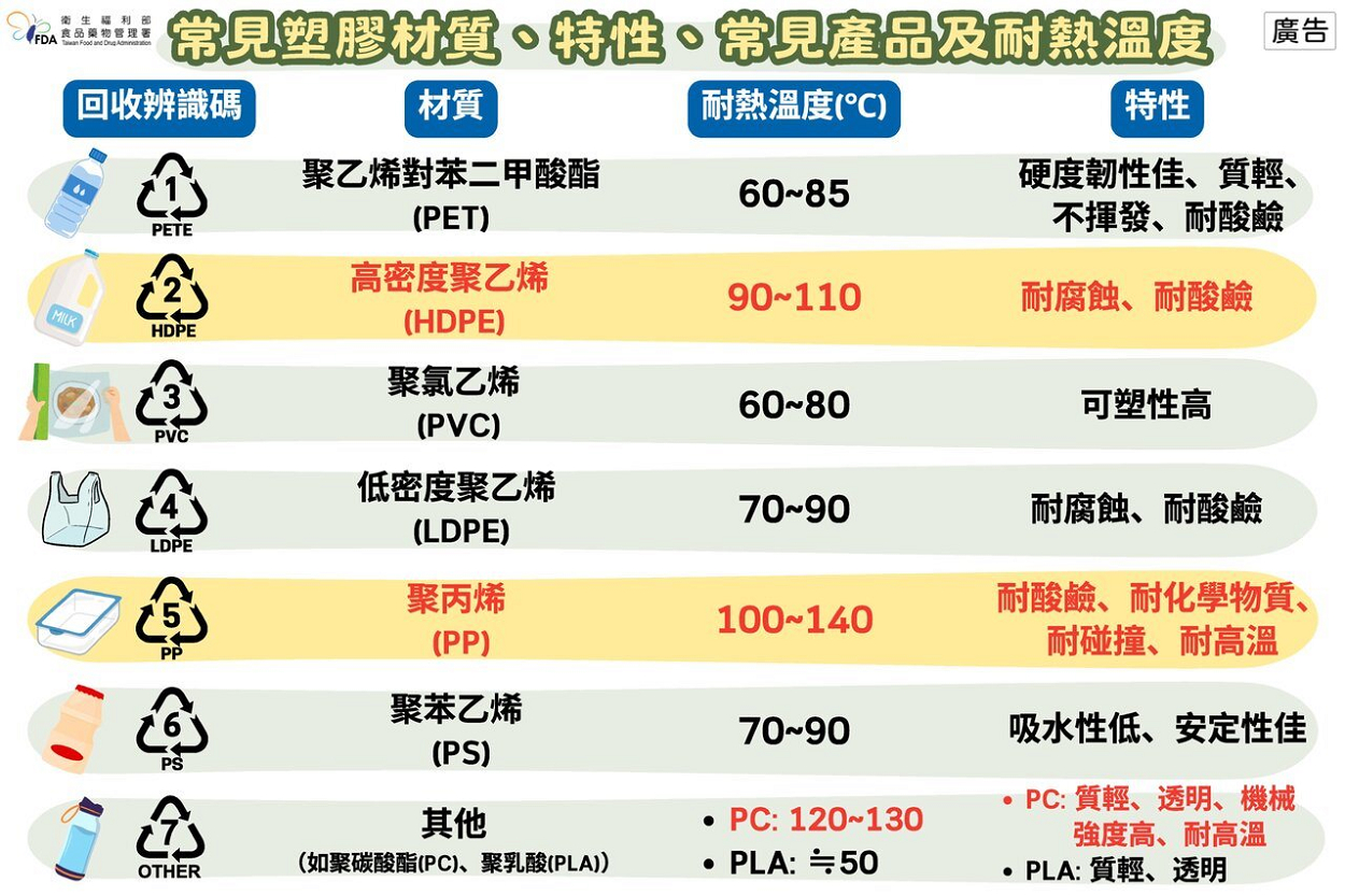 ![]() 常見塑膠材質、特性、常見產品及耐熱溫度 |