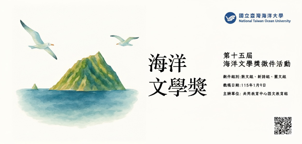 堂堂邁入第十五個年頭,海洋文學獎徵件包含散文(800字以上)、新詩(15行以上)及圖文創作,為鼓勵海大同學們持續創作,體現本校深耕海洋及文學教育之初衷,徵件活動投稿題目開放由同學自訂,