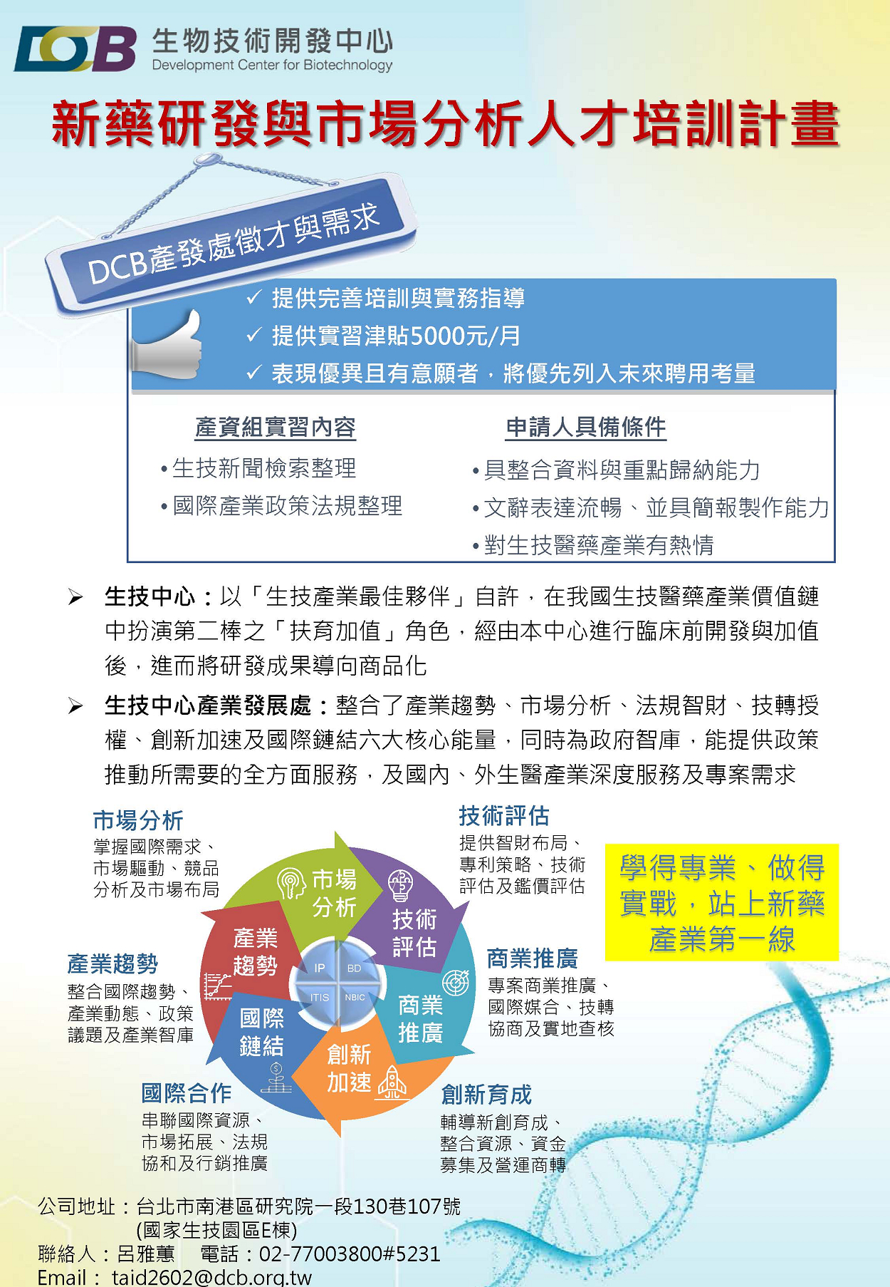 財團法人生物技術開發中心新藥研發與市場分析人才培訓計畫