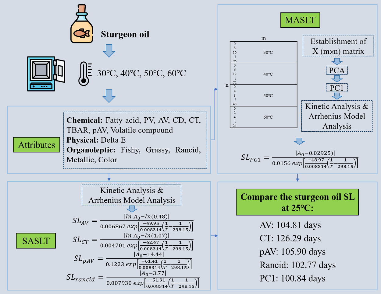 Multivariate Accelerated Shelf-Life Testing Methods for Predicting Shelf Life of Sturgeon Oil