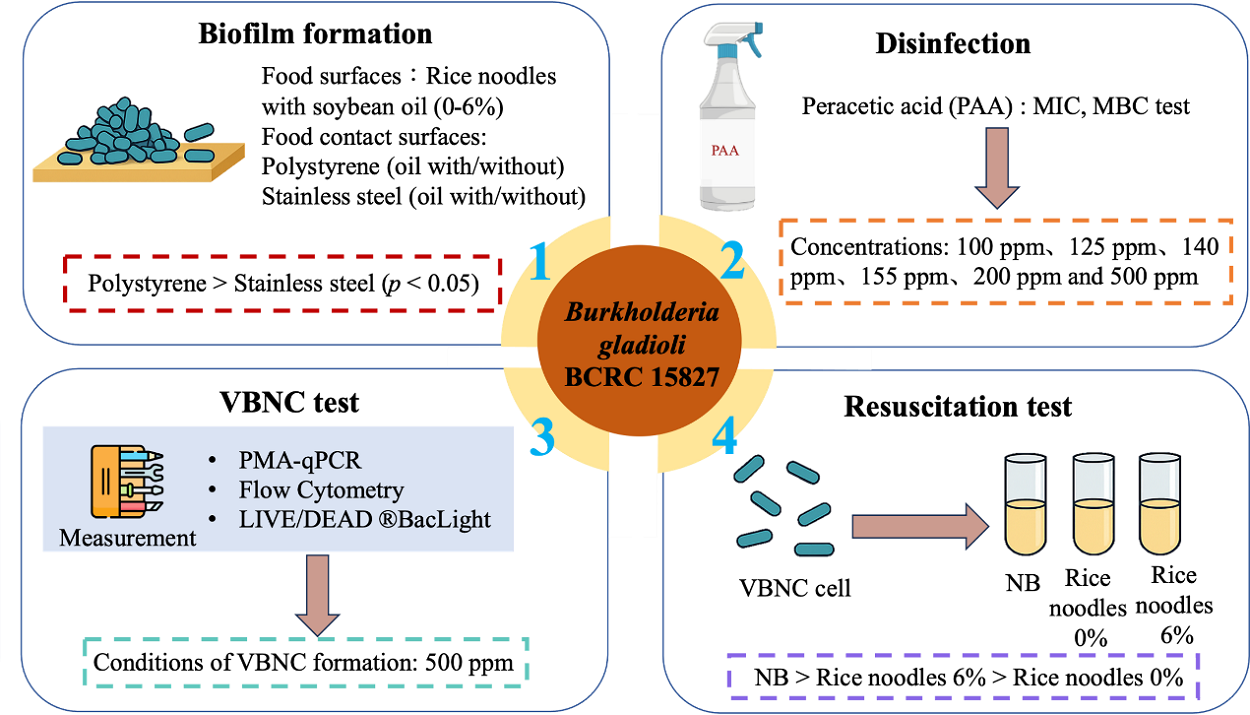 3.病原菌在食品和食品接觸面形成VBNC狀態之影響及其復甦: 唐菖蒲伯克氏菌