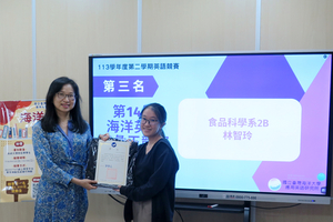 賴艷青同學榮獲113年學年度第14屆國立臺灣海洋大學「海洋英語字彙王」競賽佳作